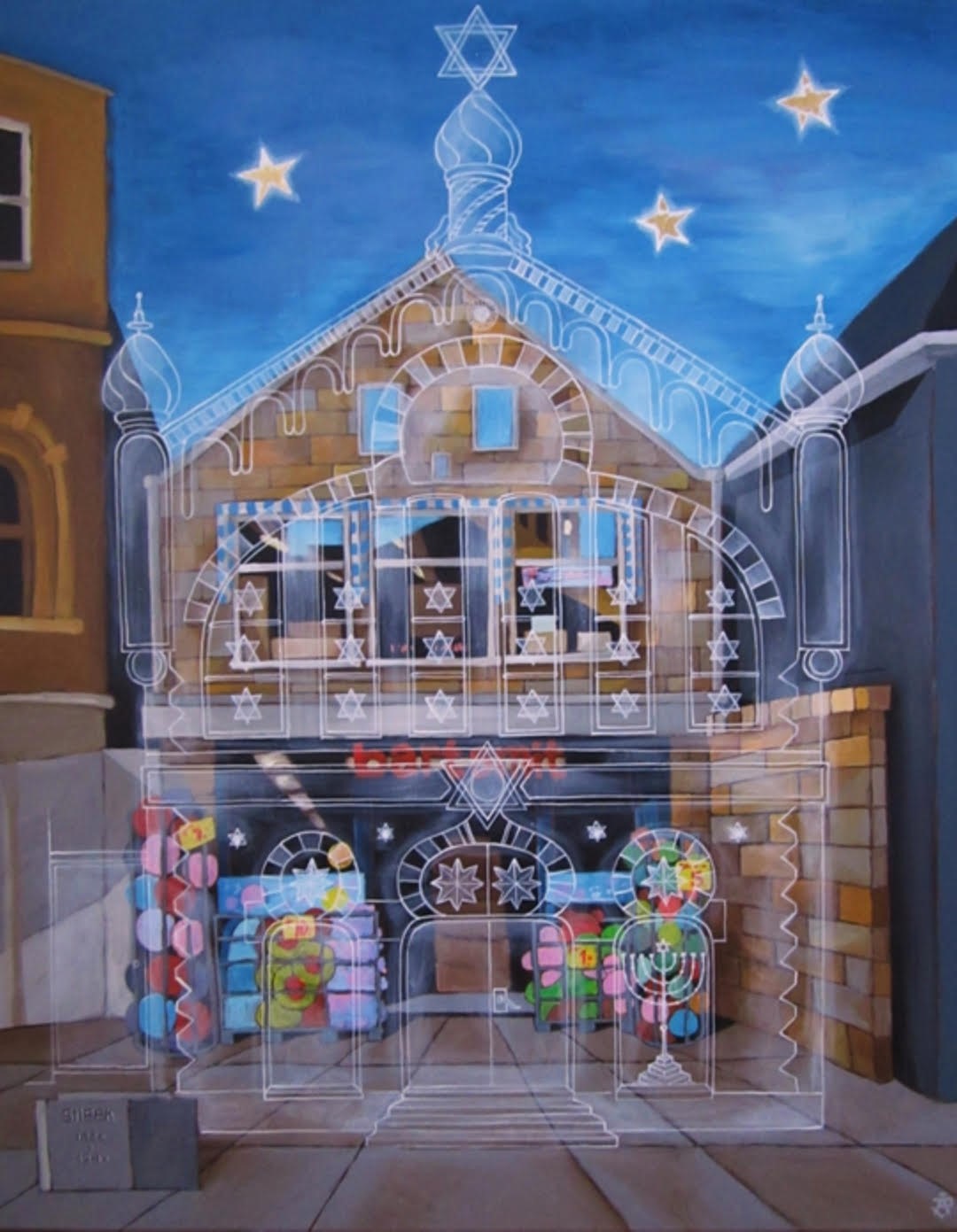 In 1972 wordt, op initiatief van de Friese Culturele Raad, een gedenksteen in het trottoir voor de plek waar de synagoge stond geplaatst. In 1984 wordt besloten de steen op een sokkel in de vorm van een davidster te plaatsen. Een aantal joodse burgers schreef een bedankbrief: ‘…We vinden de verandering van de Herdenkingssteen in de Davidster erg mooi geworden. Nu staan de mensen erbij stil in plaats van eroverheen te lopen…’. Toch gaat vanaf 1995 al, gezien een ingezonden brief, opvallen dat het monument oneigenlijk door het publiek wordt gebruikt. Een verontwaardigde Sneker spreek zelfs van vandalisme.